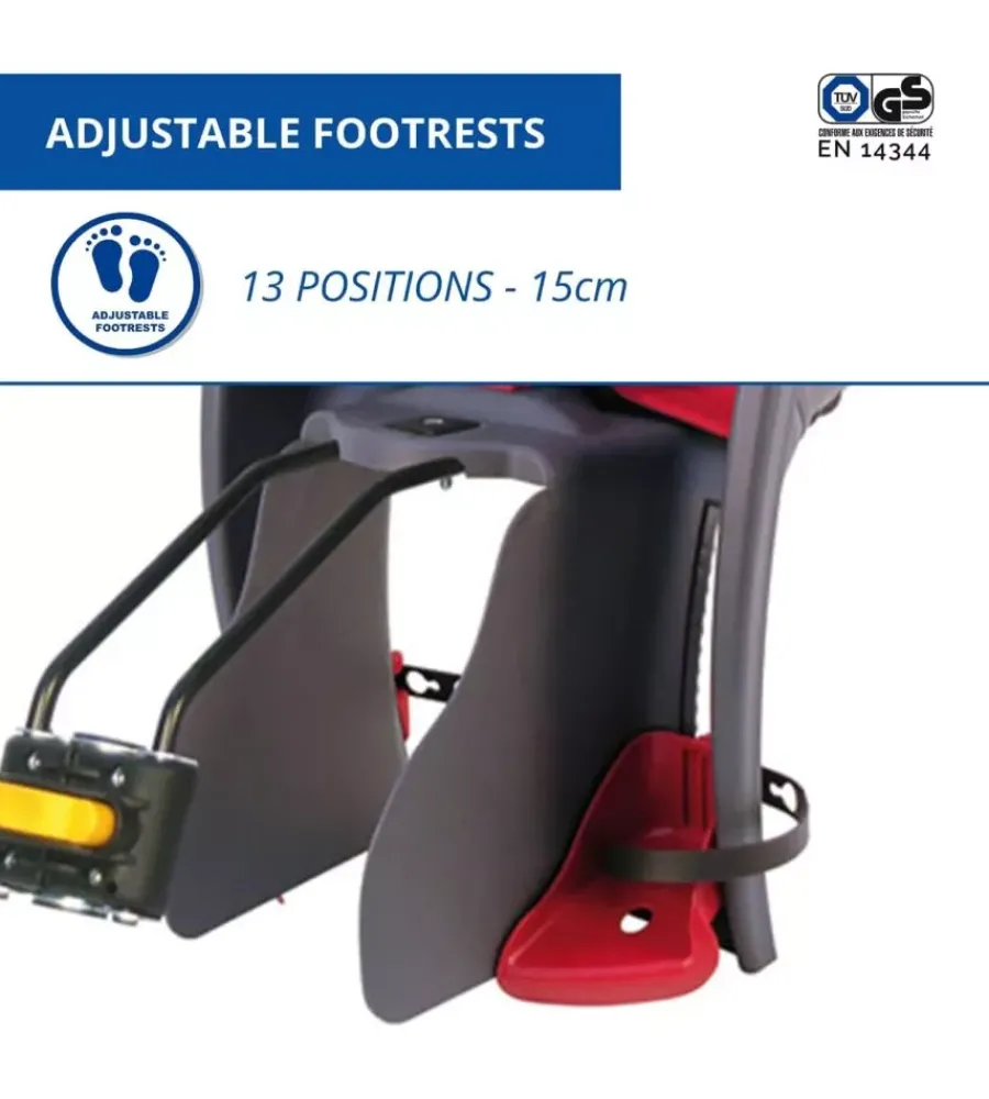 - Poggiapiedi regolabili: 13 posizioni per adattarsi alla crescita del bambino.